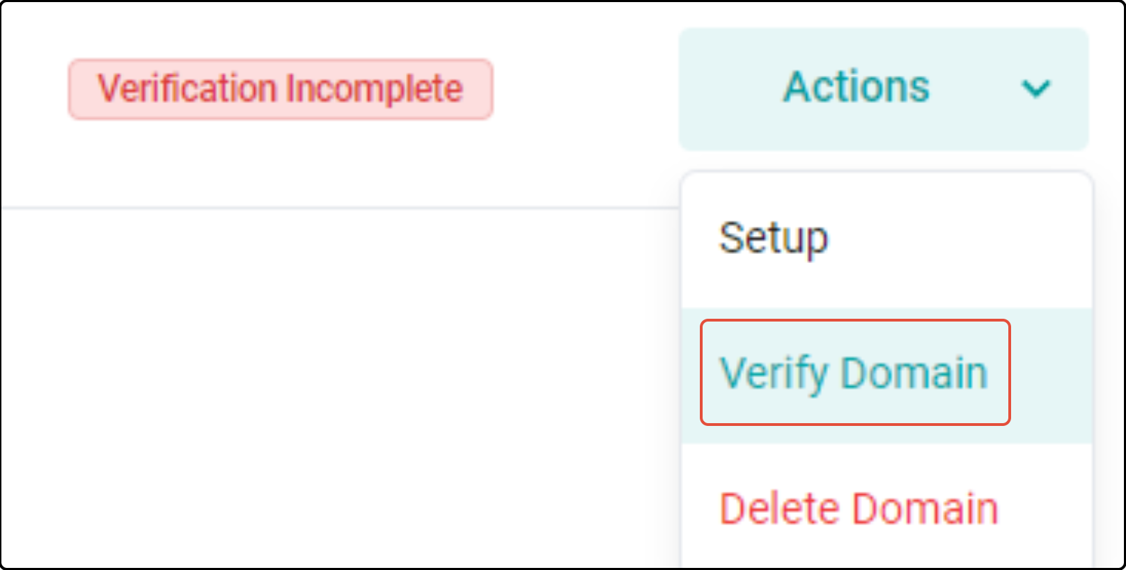 Once the records are added, please return to the Email Domain page in your Snappy Kraken dashboard, select the same actions dropdown menu, and select 'Verify Domain.'