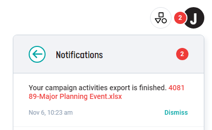 The report will be prepared in the background. You can continue working in Campaigns, and you will be notified at the top right of the page once it's ready for download.