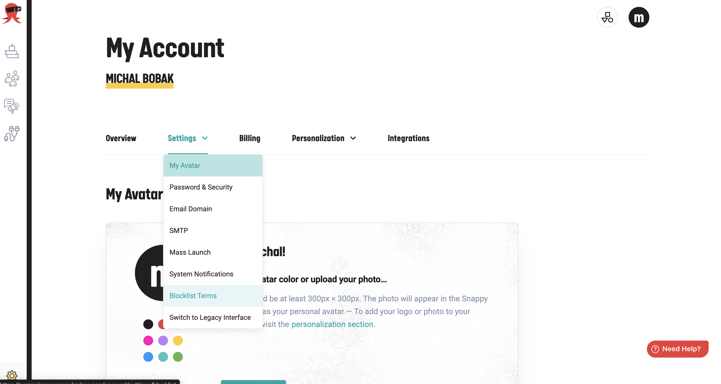 Under the settings dropdown, click on 'Blocklist Terms". You can also go directly to the Blocklist Terms page here.
