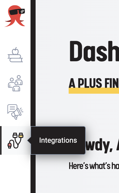 - On your dashboard, go to the Integrations page by clicking the wire icon on the left side menu.
