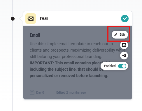 - Navigate to the email step of the campaign and hover over it to click the Edit (pencil icon) option.