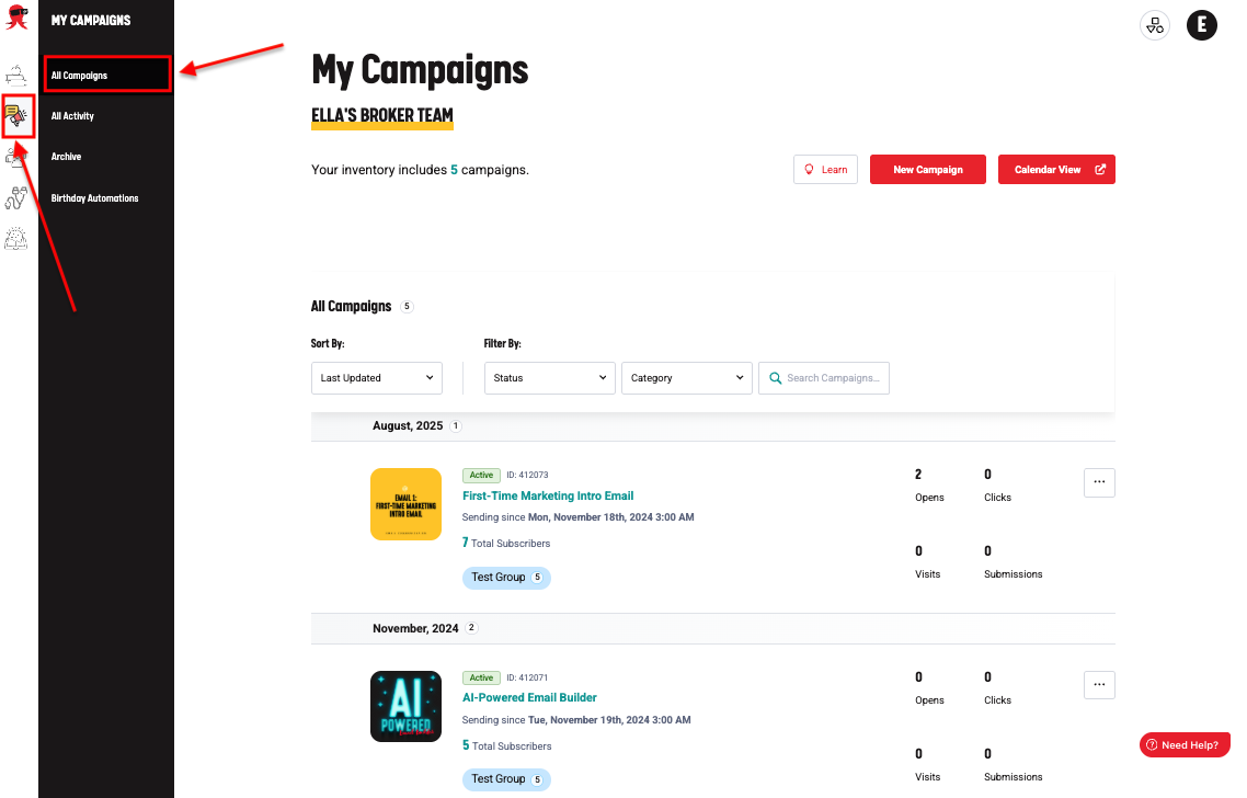Step 1: Go to the Campaigns Page
