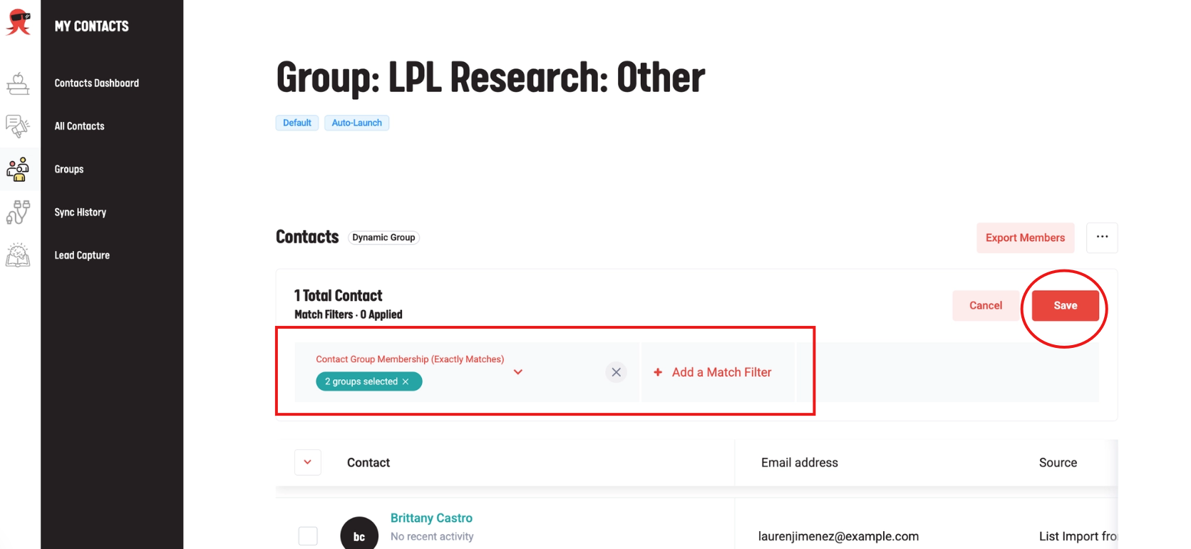 - Automatically creates a dynamic group used to decide which contacts will receive campaigns generated for that Auto-Launch type.